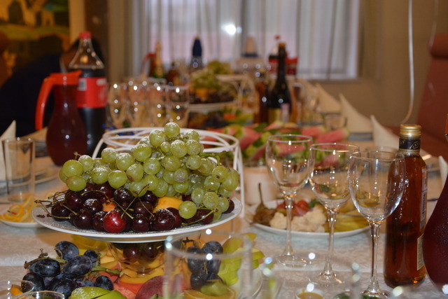 Праздничный стол украсят блюда из банкетного меню, где стоимость на персону составит от 1000 рублей.